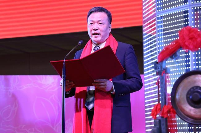 上圖為陳慶堂董事長和張帆市長、上交所領(lǐng)導(dǎo)及全體嘉賓入場